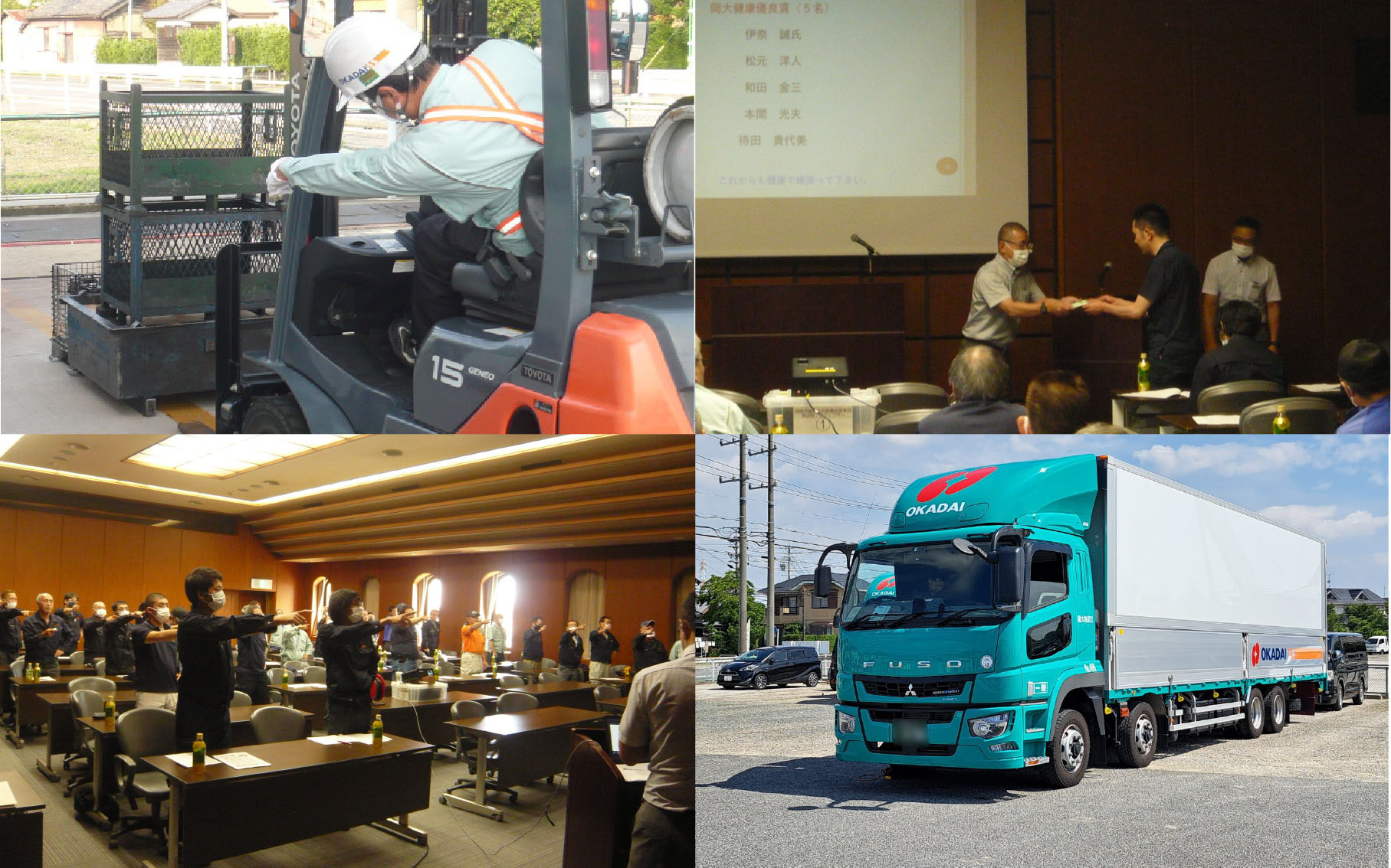 日々の車両管理・ドライバーの健康管理・運行管理はもとより毎月月末に実施するトライバーミーティングでの事故事例等による安全教育、リフト訓練など安全輸送のための教育、訓練を実施しています。